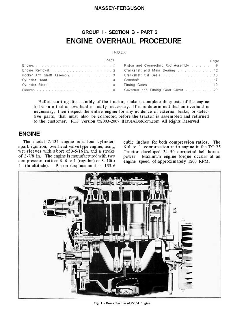 This Massey-Ferguson MF 35 - 3 cylinder Diesel Tractor manual covers tractors produced from 1960 through 1964. It contains 58 digitally enhanced pages of exploded drawings and operating information for the MF-35 tractors.